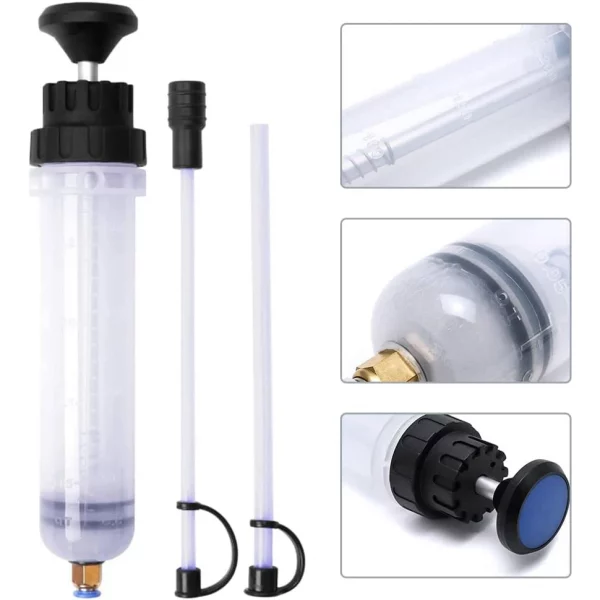 Ölwechsel spritzen pumpe-die Brems flüssigkeits absauger haben einen transparenten Flaschen körper mit klaren Skalen linien, können Sie die Flüssigkeits kapazität jederzeit überprüfen und steuern Die Durchfluss rate leicht, das Gerät kommt mit 2 flexiblen Spritzen röhrchen, hilft, Flüssigkeit leicht zu ziehen oder zu injizieren, und dieses Rohr ist abnehmbar, leicht zu reinigen und Pflegen