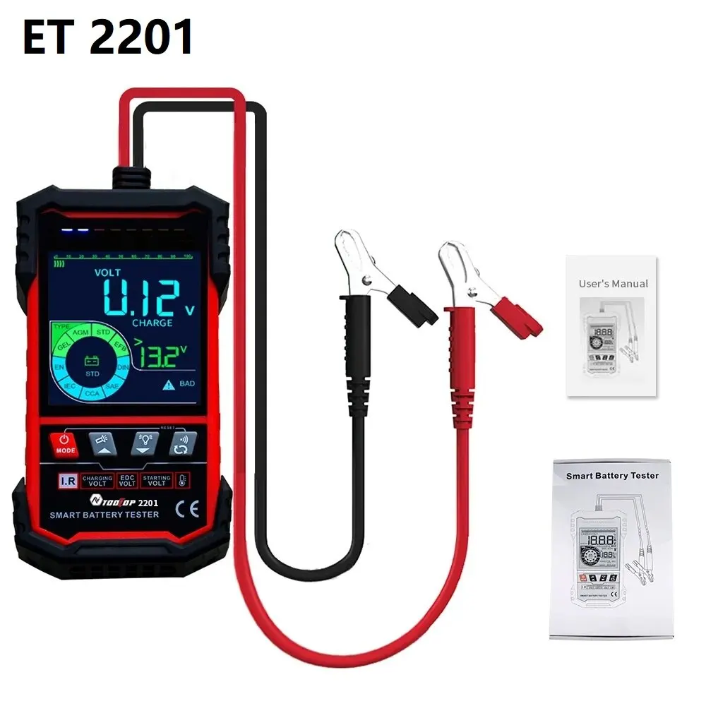 Et2201: Batterie test (Batteries pannung, Innen widerstand, Entladung strom), Start-Test (Entladung leistung) und Belastungs test (Generator leistung).